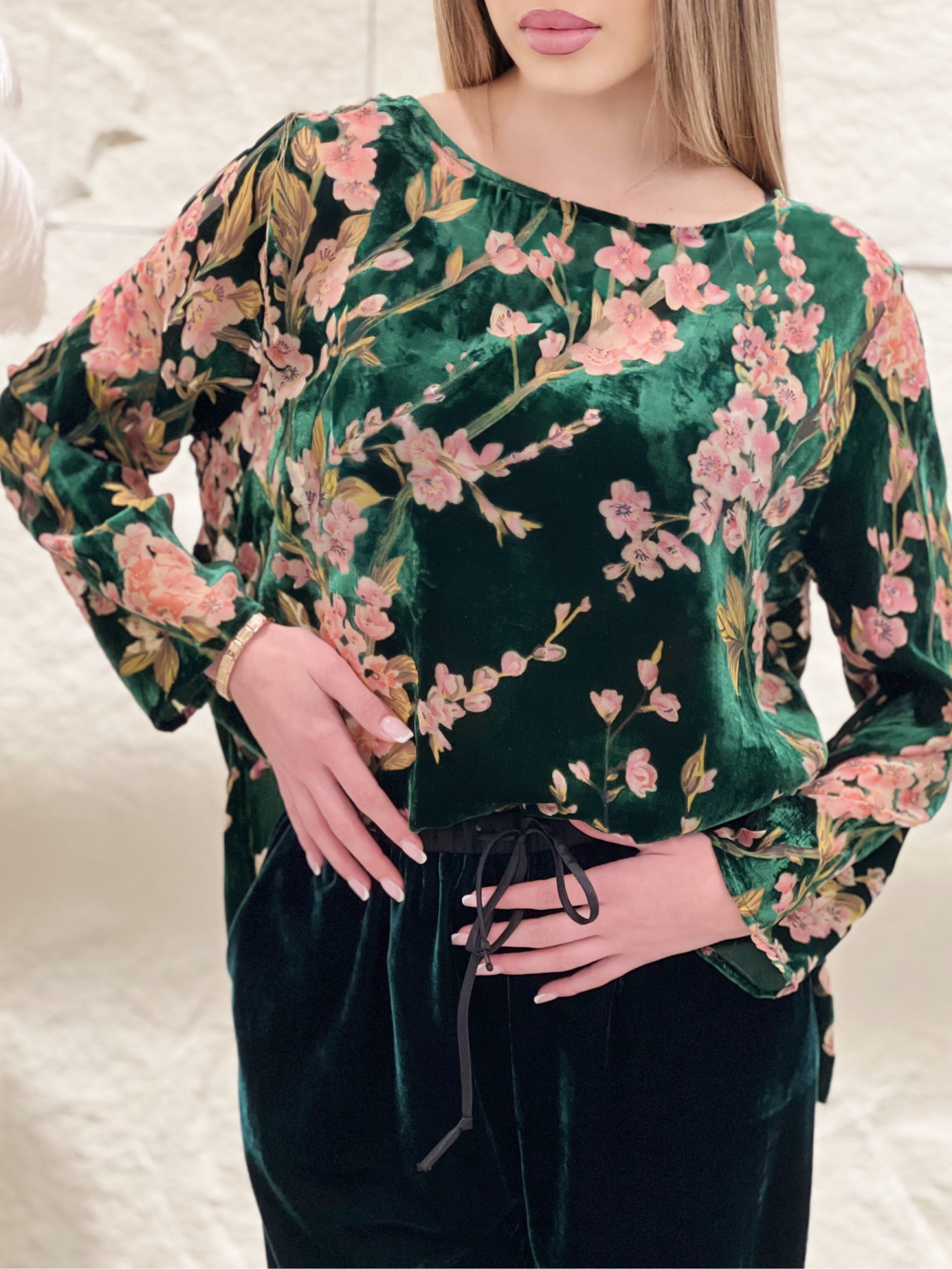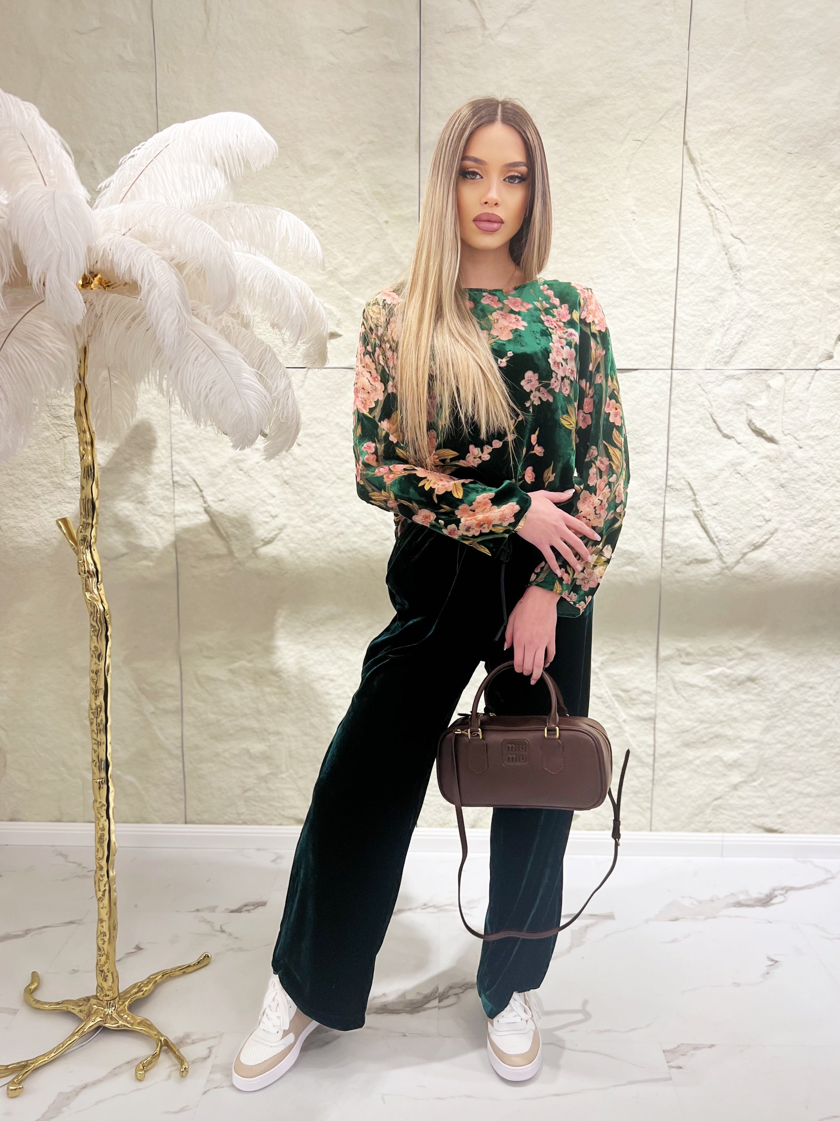 Spring Blossom Velvet е изящна зелена блуза от мек и луксозен плюш, създадена специално за пролетния сезон. Деликатните розови цветя, разпръснати по материята, придават свежест и романтично излъчване, докато кадифената текстура осигурява комфорт и стил. Перфектна за елегантни или ежедневни комбинации, тази блуза ще ви накара да се почувствате женствено и модерно. Носете Spring Blossom Velvet и посрещнете пролетта със стил !