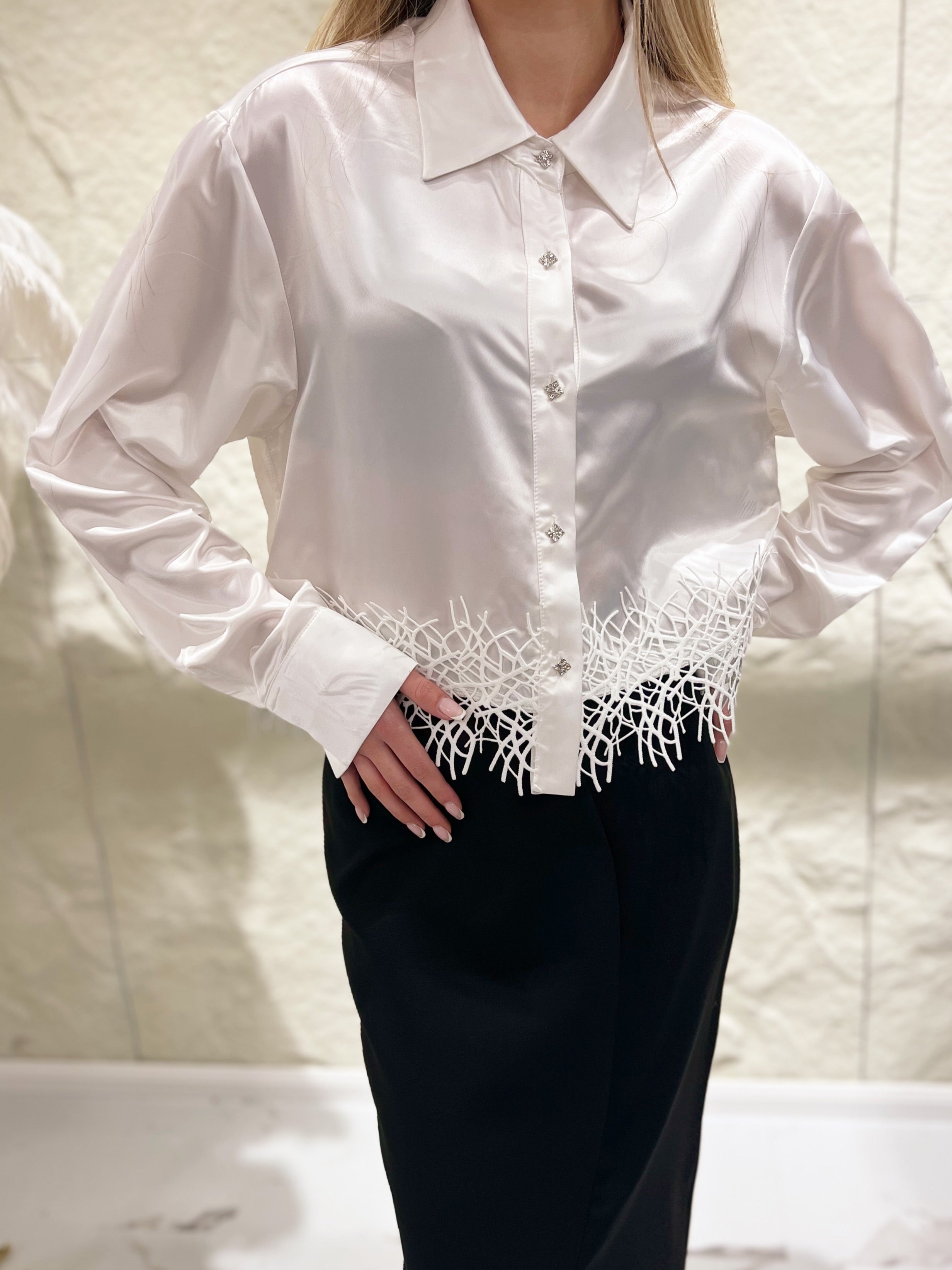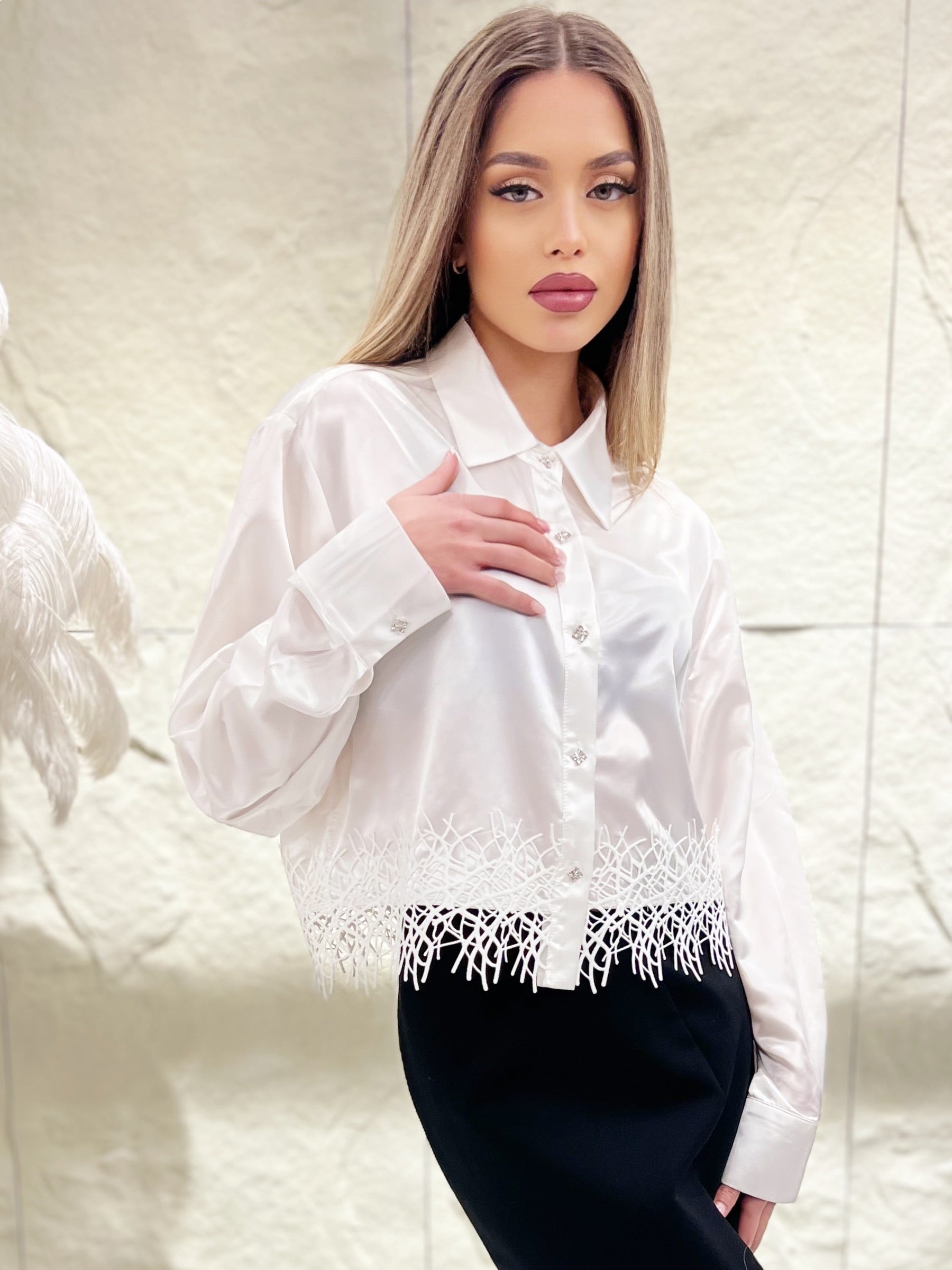 Satin Grace е елегантна бяла къса риза, изработена от луксозен сатен, който придава изискан блясък и нежност на силуета. Свободната ѝ кройка осигурява комфорт и лекота, а интересният акцент в долната част добавя модерен и стилен завършек. Идеална за съчетаване с дънки, панталони или поли, тази риза е перфектният избор за елегантни и ежедневни визии. Satin Grace – съвършен баланс между класа и комфорт.