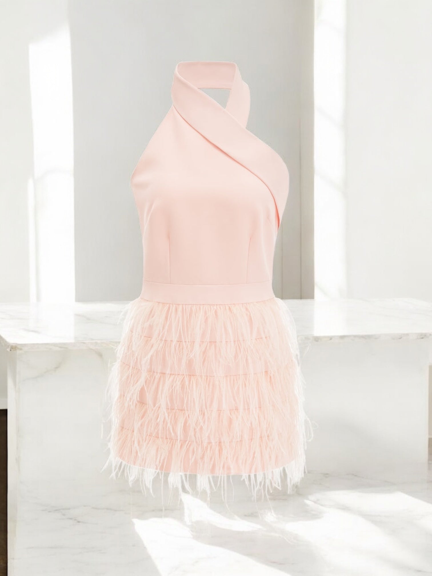 Рокля "Feather Bliss" е перфектният избор за смели и елегантни изяви. Късата розова рокля, декорирана с изискани пера, добавя нотка драматизъм и изтънченост на всяка визия. Идеална за специални поводи, тя ще ви накара да се чувствате уникални и стилни.